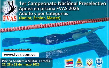 La Federación Venezolana de Actividades Subacuáticas (FVAS), convoca al 1ER CAMPEONATO NACIONAL DE NATACIÓN CON ALETAS EN PISCINA 2026 clasificatorio […]