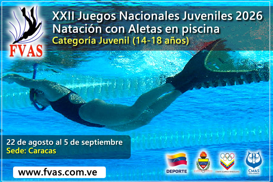 La modalidad Natación con Aletas en piscina, en categoría juvenil tendrá su participación por primera vez en la máxima cita deportiva nacional, gracias a las gestiones realizadas por la Federación Venezolana de Actividades Subacuáticas.