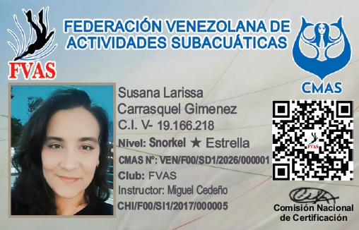 | Certificaciones de Buceo FVAS / CMAS Snorkel 1 Estrella Escuela o Club donde se formó Centro Asturiano de Caracas |