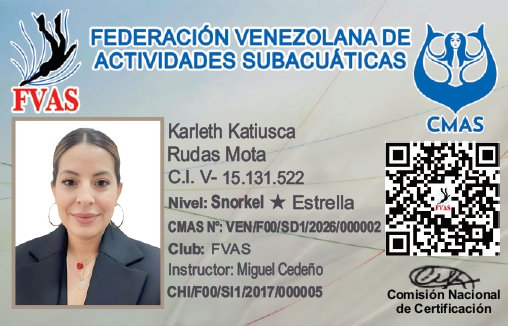 | Certificaciones de Buceo FVAS / CMAS Snorkel 1 Estrella Escuela o Club donde se formó Centro Asturiano de Caracas |